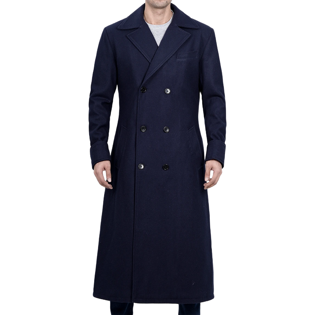 Elevate your winter wardrobe with the Aaron Men's Blue Double Breasted Long Wool Coat. Designed to combine classic tailoring with modern appeal, this coat features a sophisticated double-breasted design and a rich blue color that stands out in any setting.