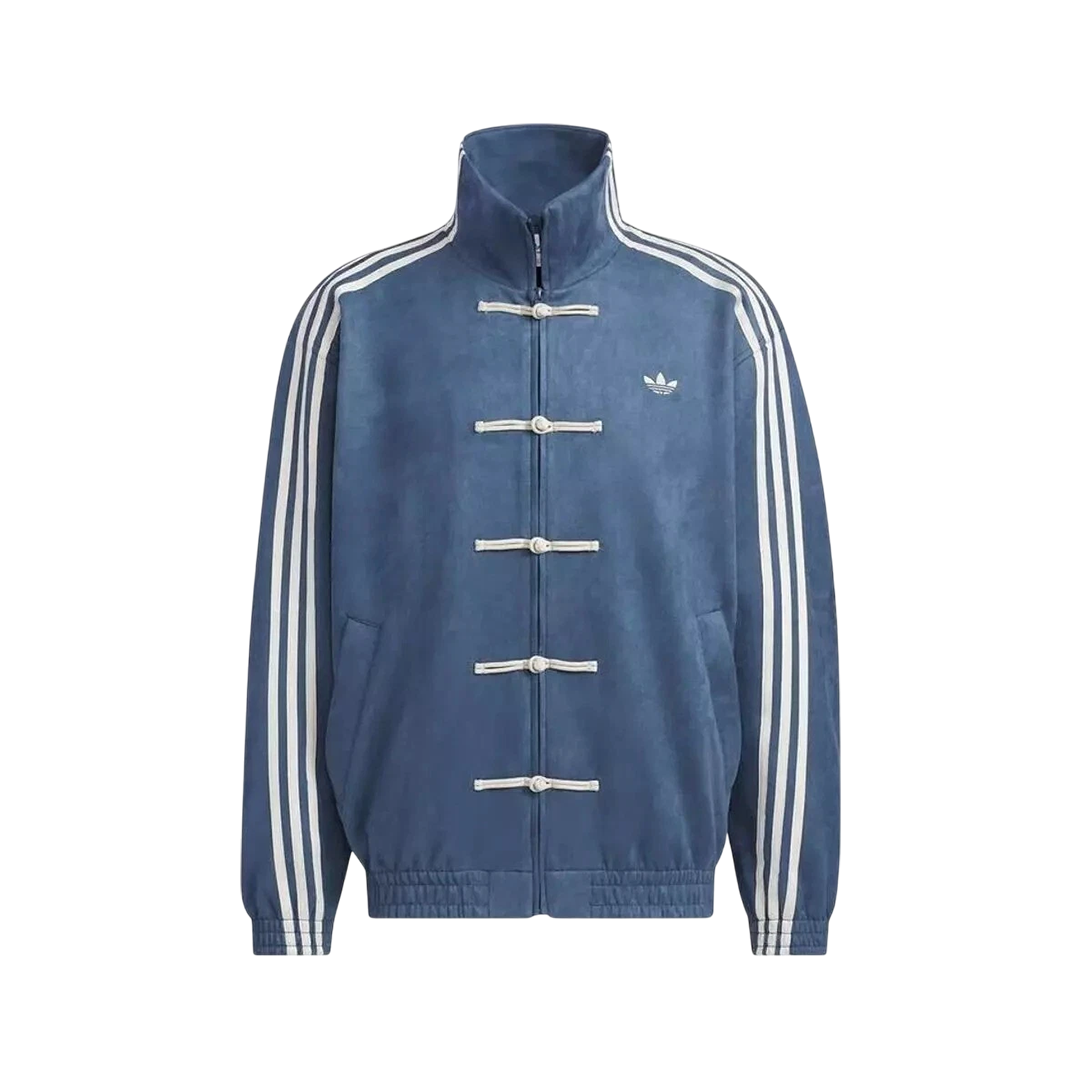 Own a piece of modern heritage with the Adidas China Exclusive Year of the Snake Track Jacket in a striking navy blue. A limited-edition recreation that merges streetwear style with luxury craftsmanship, this unisex bomber jacket offers versatile comfort and timeless design inspired by East Asian symbolism and 90s athletic flair.