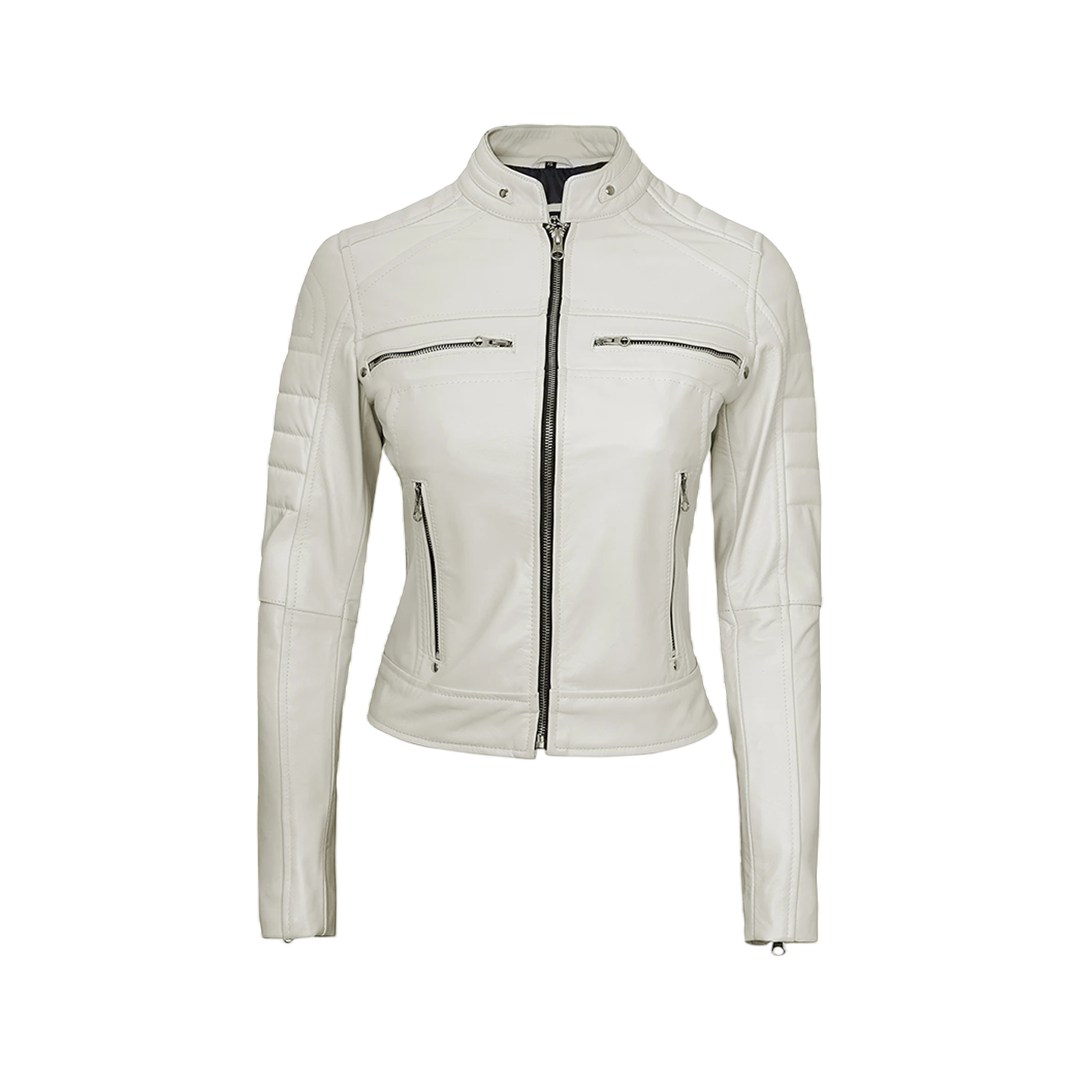 Refined yet edgy, the Austin Off White Leather Jacket is the perfect fusion of practicality and high style — built to keep up with you, wherever you go.