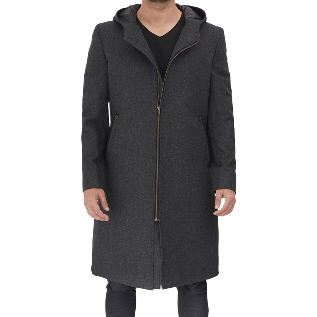 Beat the chill in style with the Barry Grey Wool Coat with Hood. Order now to bring modern sophistication to your winter wardrobe.