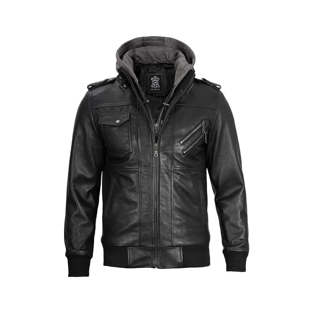 Effortless style meets ultimate functionality in this premium black lambskin bomber. Designed for the modern man on-the-go, this versatile piece transitions seamlessly from work to weekends with its convertible hood and sleek silhouette.