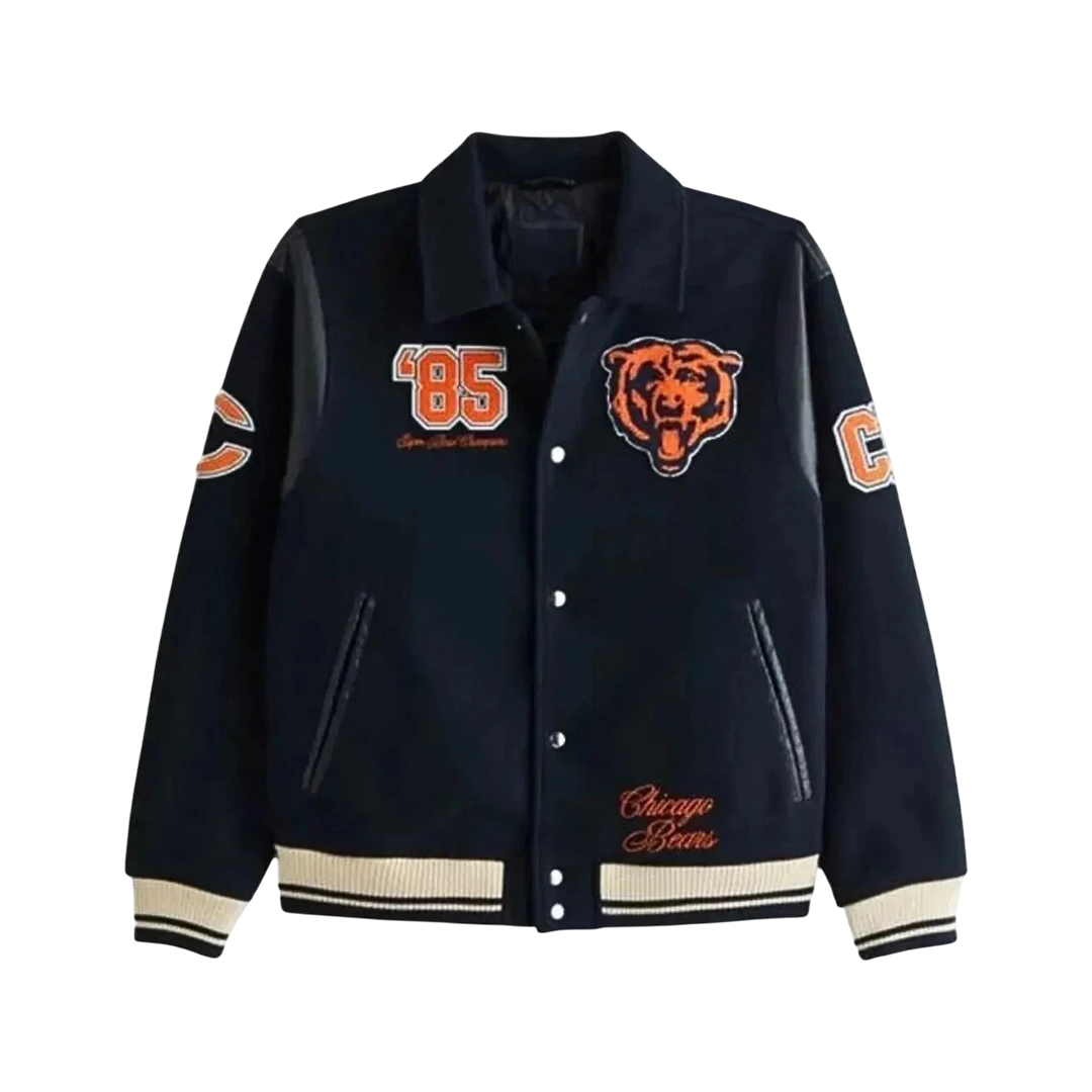 With its deep dark blue color and vintage varsity silhouette, this jacket speaks to football tradition while keeping your look versatile and sharp. Whether you're cheering from the sidelines or heading downtown, the Chicago Bears Varsity Jacket keeps you warm in more ways than one.