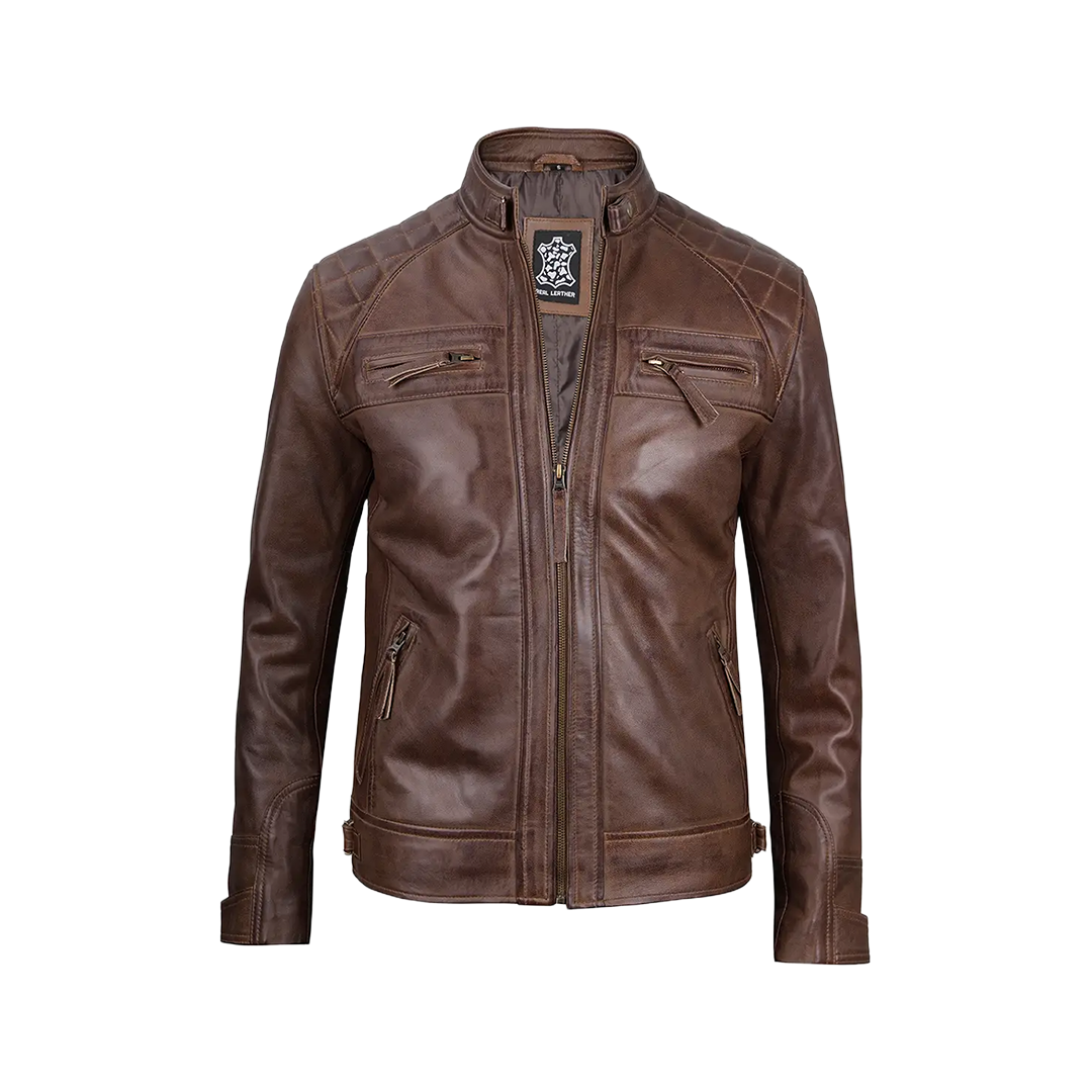 Crafted from 100% genuine lambskin leather, this chocolate brown cafe racer jacket combines classic motorcycle heritage with contemporary detailing. The quilted shoulder panels and adjustable waist strap create a distinctive look that transitions effortlessly from road to urban wear.