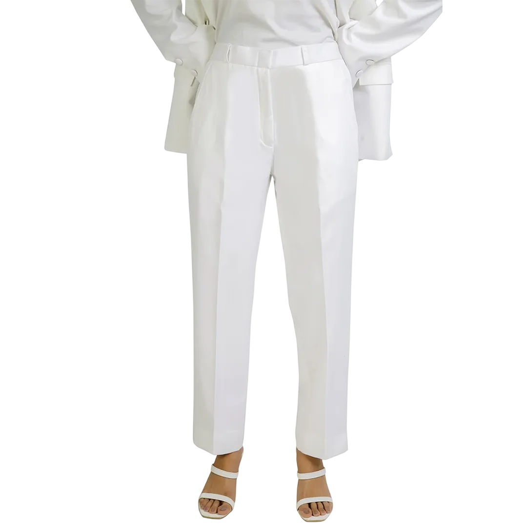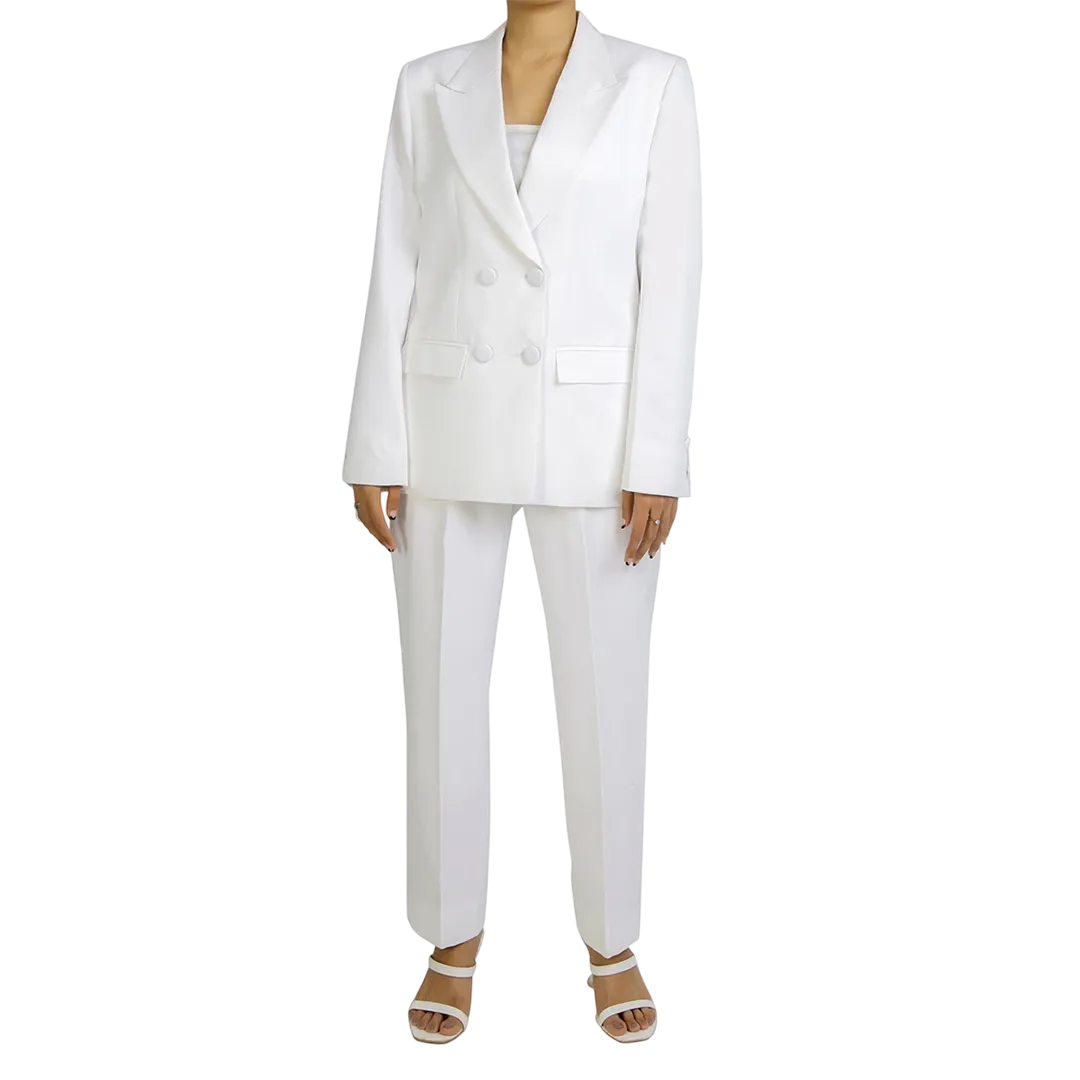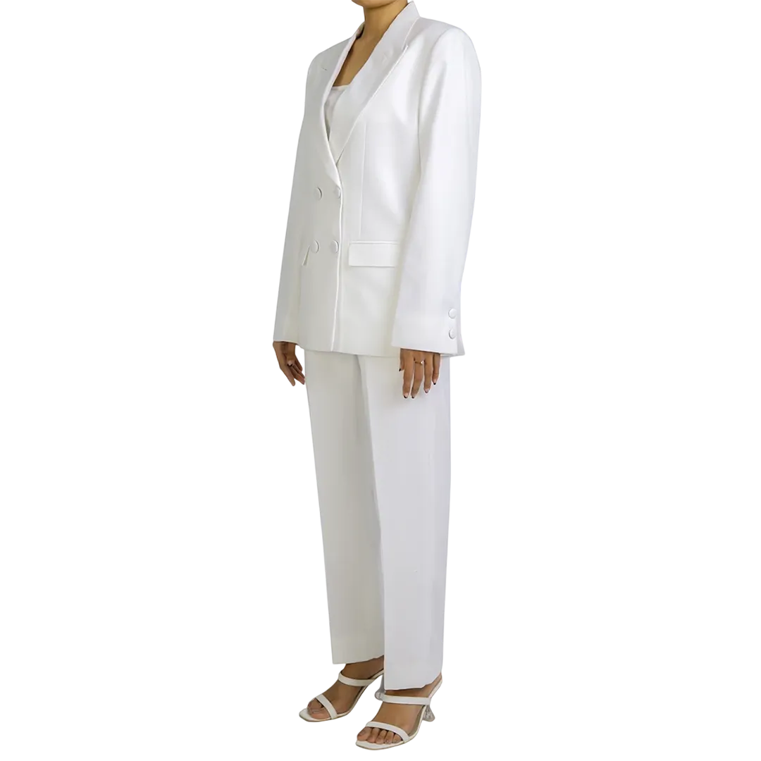 Make a powerful style statement with this crisp white suit, where boardroom-ready polish meets contemporary ease. Designed for the fashion-forward professional, this ensemble reimagines traditional suiting with a relaxed silhouette that doesn’t compromise on sophistication.