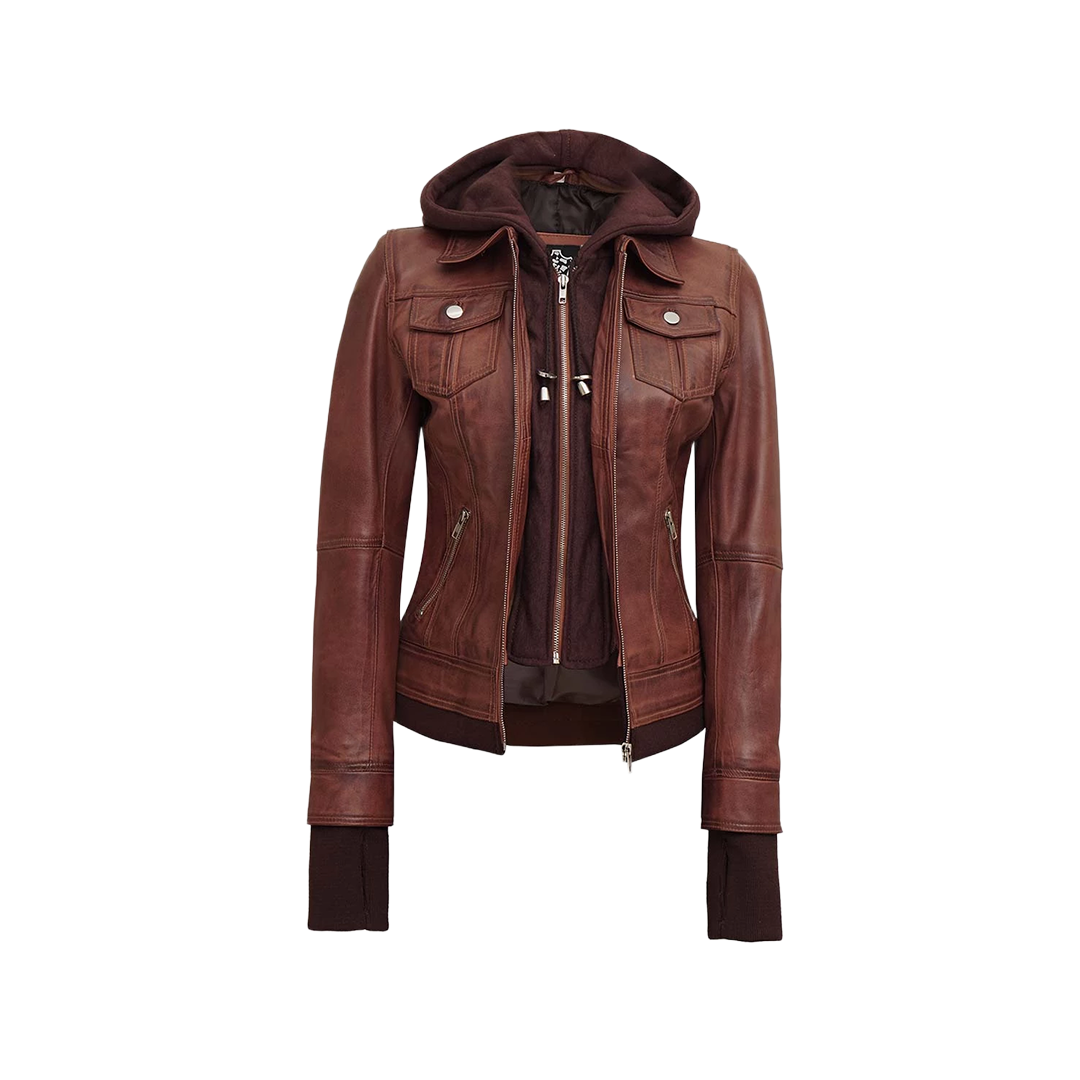 Experience effortless style and year-round comfort with the Dark Brown Women's Bomber Leather Jacket with Removable Hood. Designed for women who value both practicality and a polished, moto-inspired look, this jacket is your go-to outerwear essential.