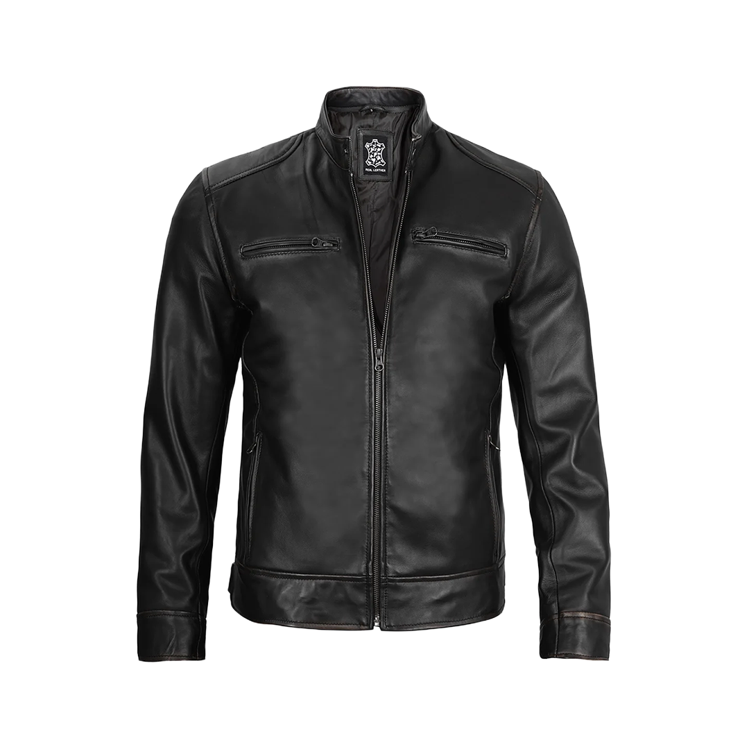 Define modern minimalism with this sleek black cafe racer jacket. Meticulously crafted from 100% genuine lambskin leather, this jacket distills the cafe racer essence into its purest form - clean lines, functional details, and timeless versatility.
