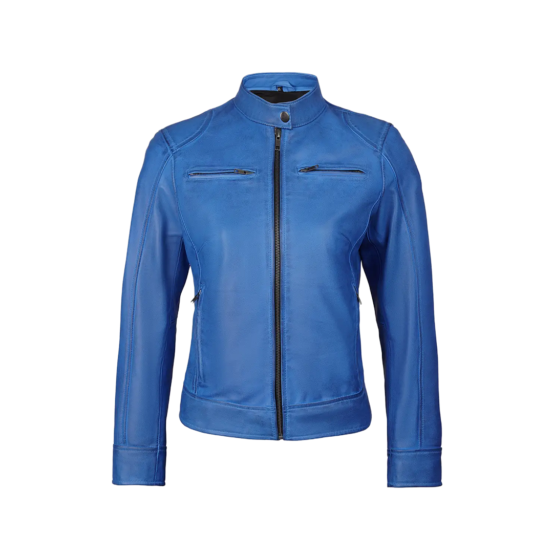 Turn heads with the Dodge Sky Blue Women's Leather Biker Jacket — a vibrant twist on a timeless silhouette. Designed to stand out, this jacket brings confidence and character to every step you take.
