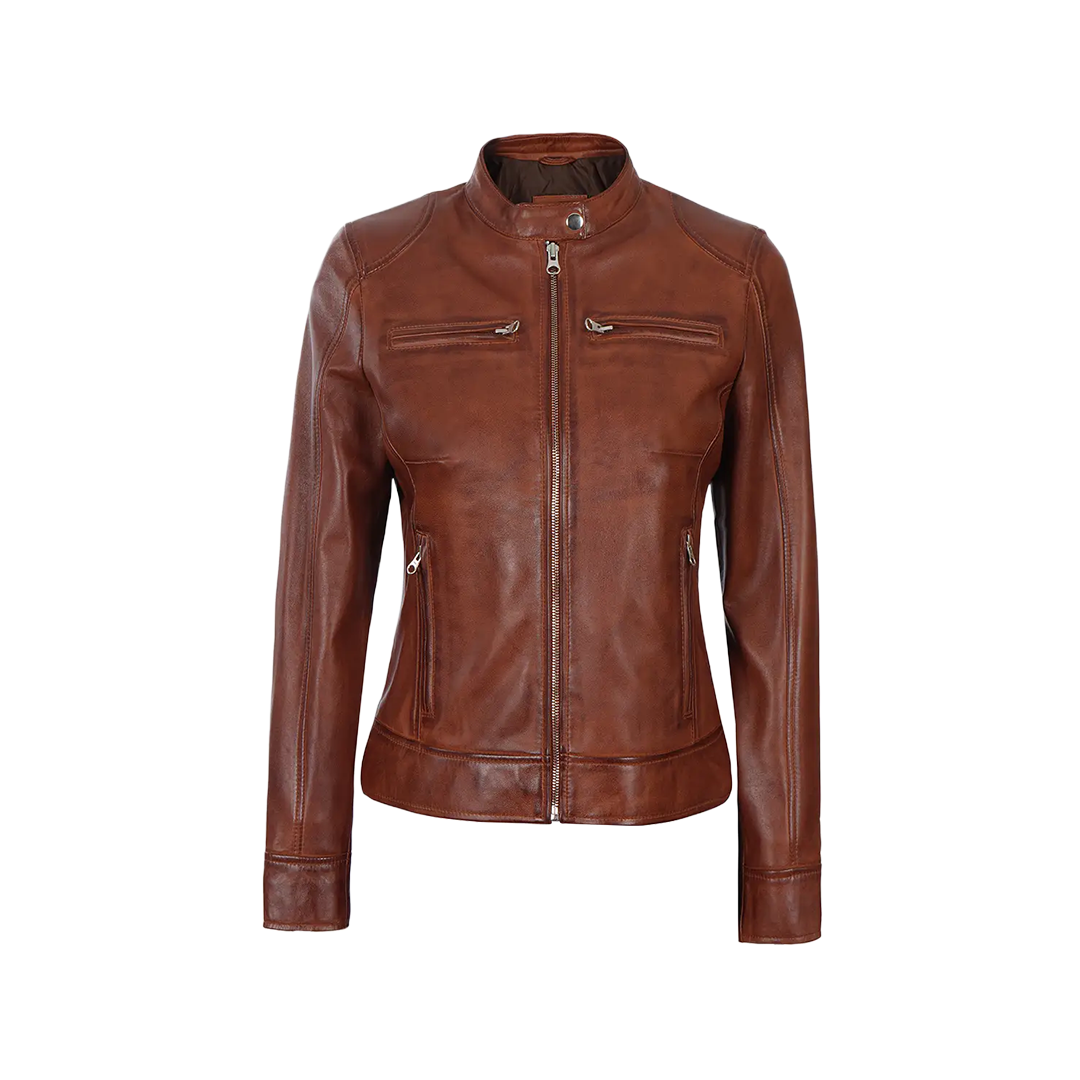 Chic yet practical, this women’s cognac wax brown leather jacket adds just the right touch of polish to any ensemble. Order now and redefine your everyday style.