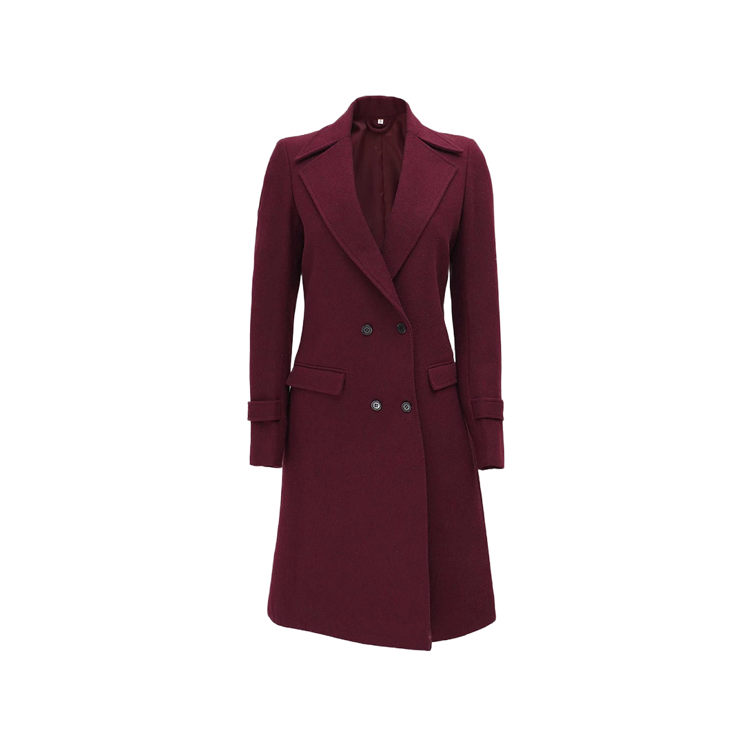 Stay warm, look polished, and step into the season with confidence in the Doris Women's Maroon Wool Coat – where timeless design meets everyday functionality.