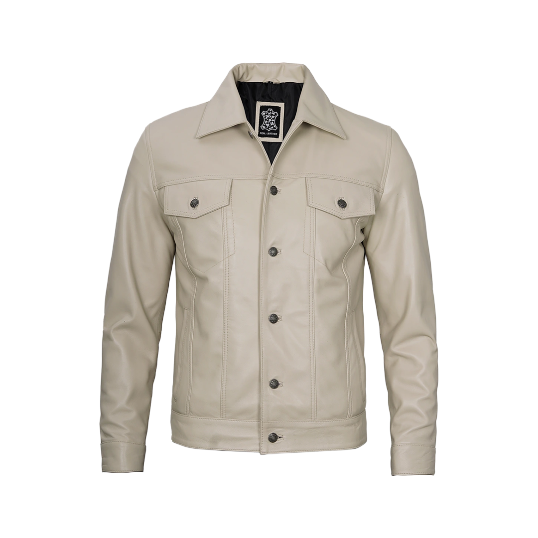 Master effortless cool with this premium beige leather trucker, blending timeless Americana style with modern comfort. The warm neutral hue and genuine lambskin construction create a versatile piece that elevates every casual look.