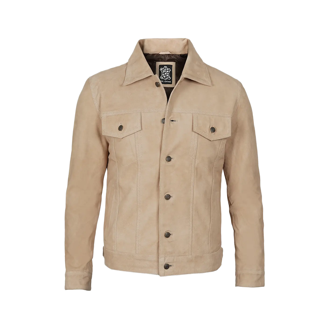 Master effortless cool with this rich camel suede trucker, blending rugged texture with refined tailoring. The warm neutral hue and luxe suede construction create a versatile statement piece that elevates casual and smart looks alike.