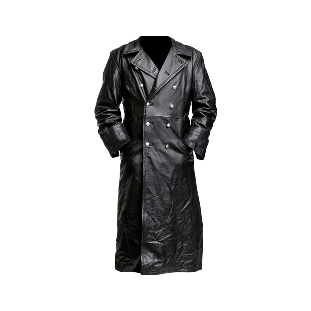 A timeless tribute to vintage military fashion, this German WW2 Army Officer-inspired trench coat is crafted from real leather and tailored for a commanding presence. With its structured silhouette and authentic detailing, it's a standout piece for collectors, reenactors, or anyone drawn to classic military aesthetics.