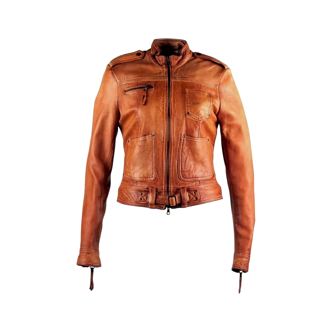 Channel Emma Swan’s fearless style with this distressed brown leather jacket — a fan-favorite look brought to life with real leather and sharp biker details.