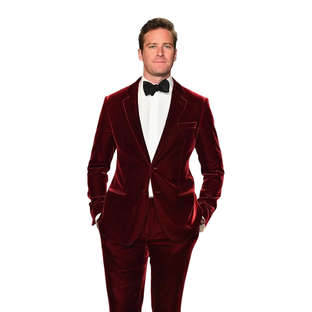 Command attention with this luxurious maroon velvet tuxedo, where rich color meets classic sophistication. The deep burgundy velvet paired with a structured notch lapel creates a striking balance between contemporary style and timeless elegance, perfect for the gentleman who wants to stand out while maintaining formal refinement.