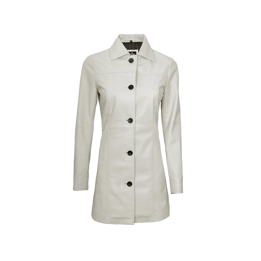 Refined, elegant, and effortlessly timeless — the Kandis Women's Off White Leather Car Coat brings a fresh twist to a classic silhouette. Designed for women who embrace understated luxury, this 3/4 length coat is the perfect balance of fashion and function.