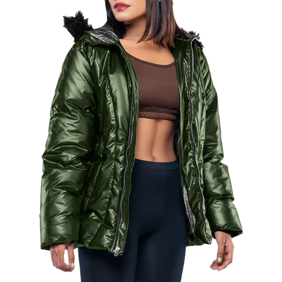 Step into winter with confidence in the Lexie Green Puffer Jacket, designed for women who love fashion and functionality. With its deep green hue and high-performance insulation, this coat is perfect for cold-weather adventures and everyday wear.