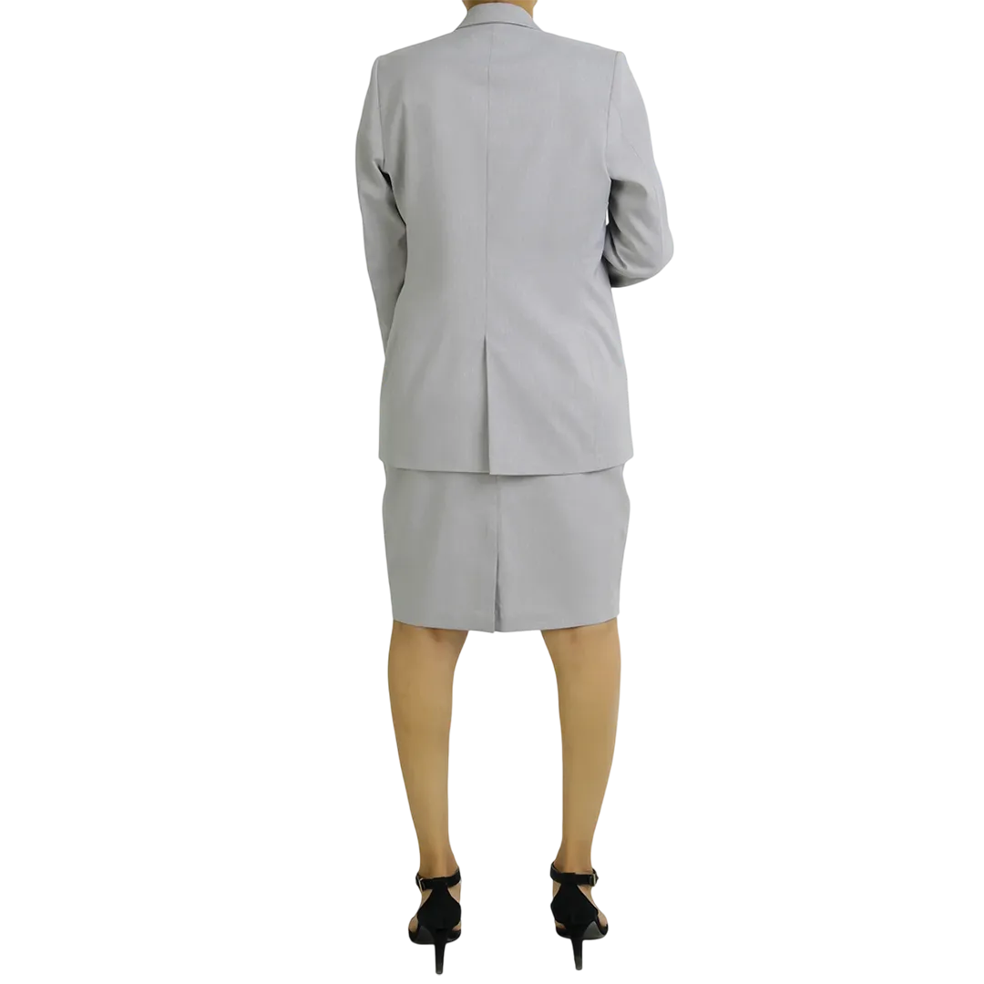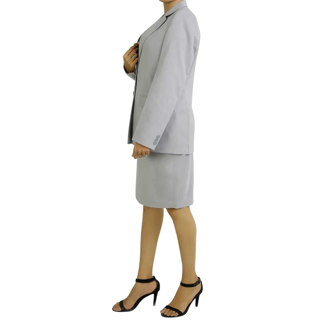 Upgrade your 9-to-5 style with this contemporary grey skirt suit, where boardroom-ready polish meets all-day comfort. The timeless medium grey shade transitions seamlessly from morning presentations to after-work engagements, while the intentionally relaxed cut provides freedom of movement without sacrificing structure.