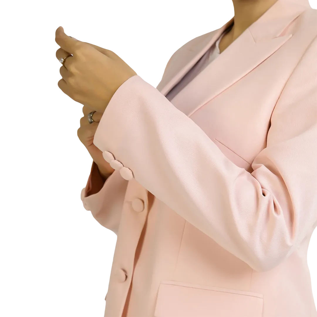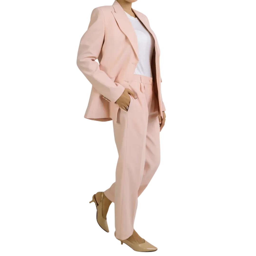 Redefine professional femininity with this chic light pink suit, designed for the style-conscious woman who refuses to compromise on comfort. The soft blush hue breathes new life into traditional suiting, while the thoughtfully relaxed silhouette keeps you at ease from desk to dinner.