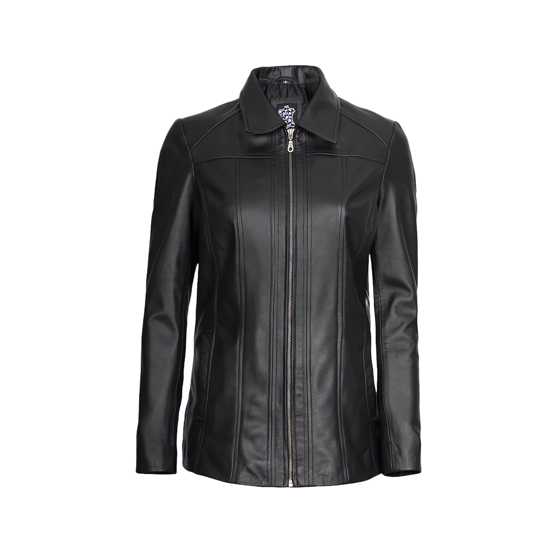 A timeless essential with modern edge — the Marsha Women’s Black Leather Car Coat is designed for women who appreciate elegance in every layer. Crafted from 100% real lambskin leather, this coat delivers softness, warmth, and effortless sophistication for every season.