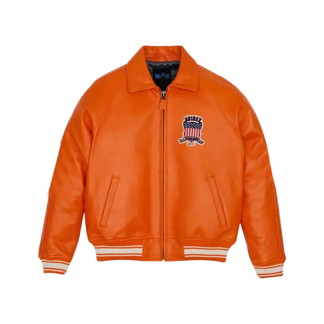 Add a bold, iconic touch to your wardrobe with this striking orange Avirex bomber jacket. Designed to capture the essence of classic American aviation, it's built for both statement style and lasting durability.
