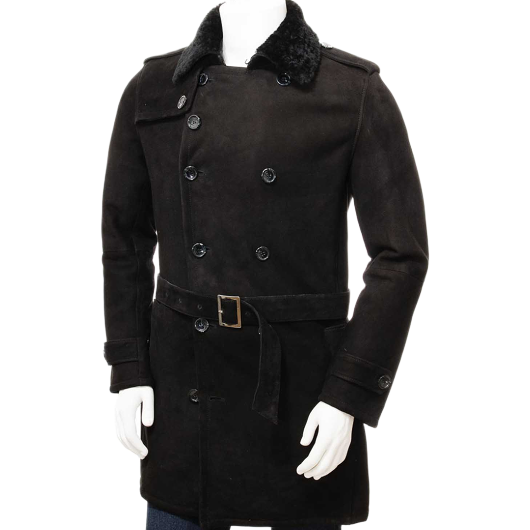 Stay effortlessly warm and stylish with this men's black shearling coat. Made from genuine leather and lined with thick shearling, it delivers luxury comfort and refined outerwear appeal for winter months.