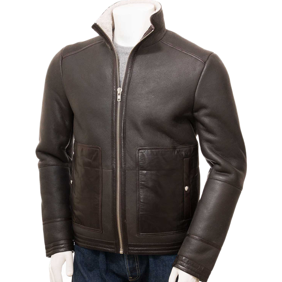 Designed for those who appreciate understated sophistication, this sheepskin biker jacket delivers warmth, comfort, and timeless edge in one sleek package. The rich brown tone and subtle contrasts make it a standout winter essential.