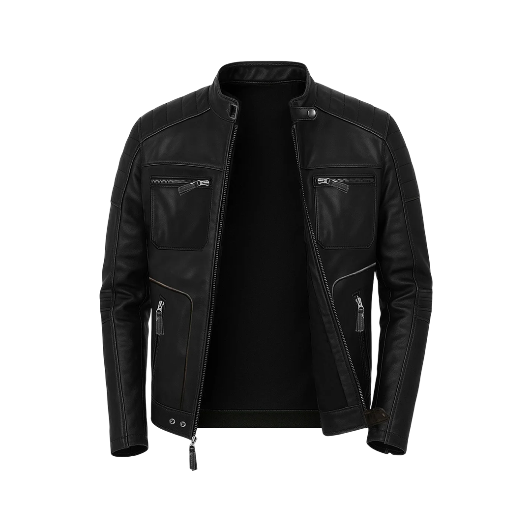 Own the road in this statement-making black biker jacket - where authentic motorcycle heritage meets modern craftsmanship.