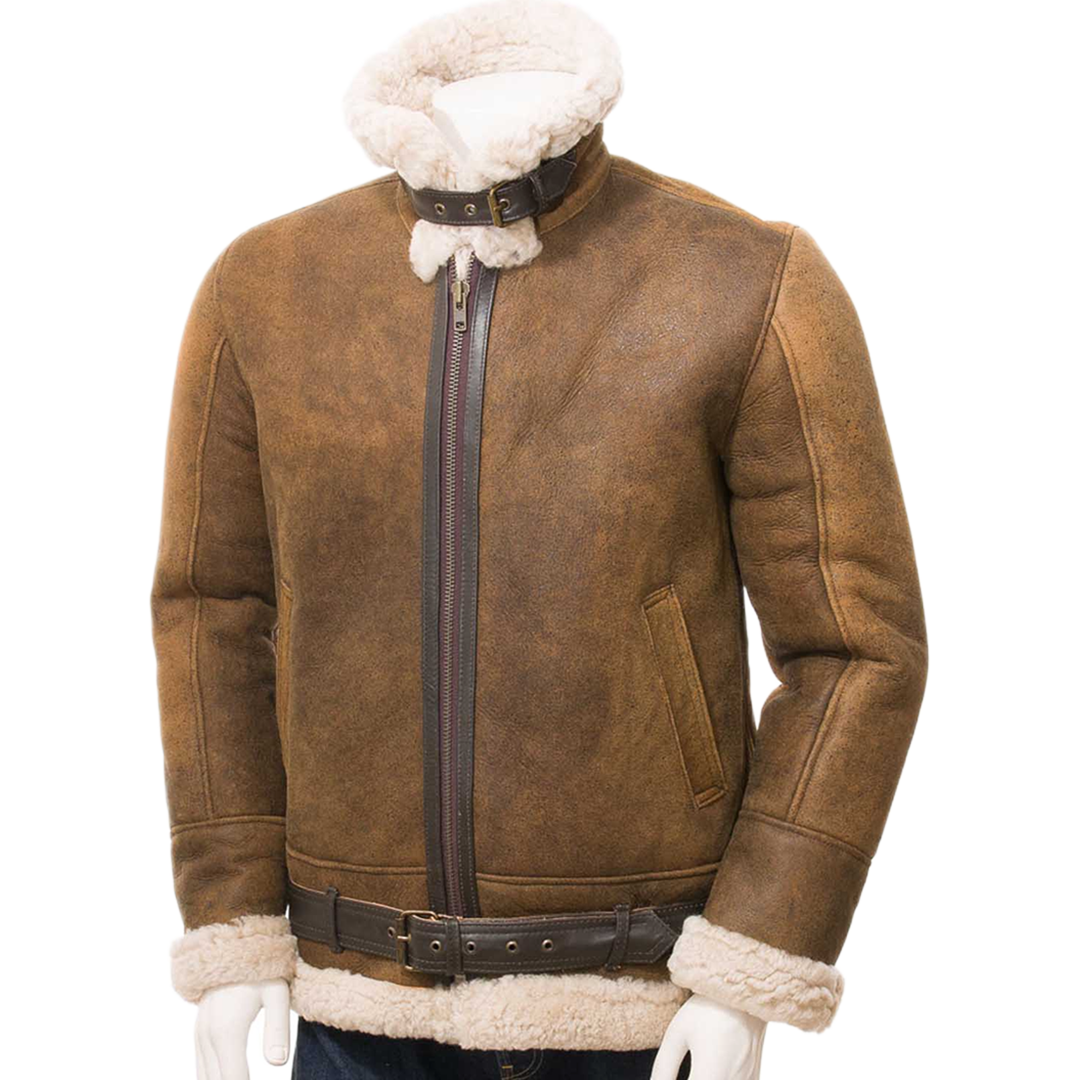 Experience the heritage of aviation with this authentic tan sheepskin aviator jacket, crafted for warmth, durability, and unmistakable vintage appeal. Built using genuine shearling, it combines rugged functionality with timeless design.