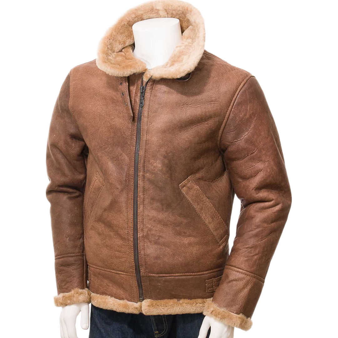 Crafted from full-thickness genuine shearling, this tan aviator jacket with ginger fleece lining offers exceptional warmth and timeless character. It’s built for those who value classic flight-inspired fashion with real winter functionality.