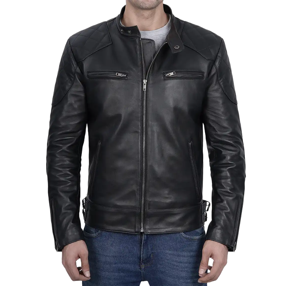 Command the road with this quintessential black leather jacket. Meticulously crafted from 100% genuine lambskin, this cafe racer blends classic motorcycle heritage with contemporary quilted detailing for uncompromising style and performance.
