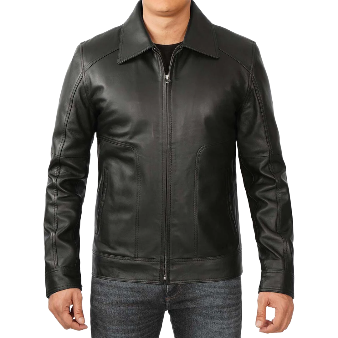 Crafted from 100% genuine lambskin leather, this Harrington-style jacket blends vintage charm with contemporary wearability. The shirt collar and clean silhouette make it a versatile staple for any wardrobe.