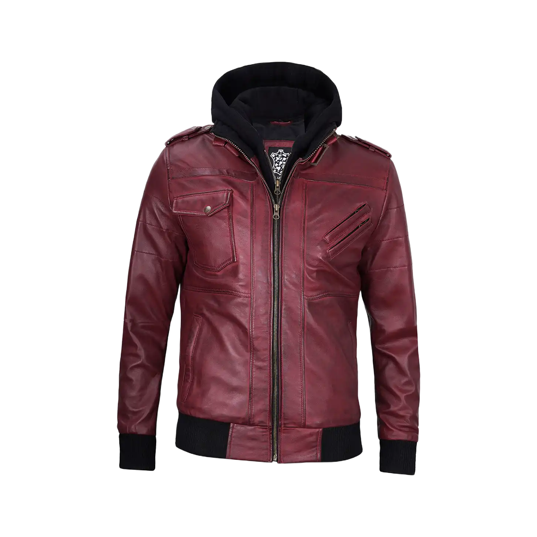 Command attention with this luxurious burgundy leather bomber, blending rich sophistication with modern functionality. The deep wine hue and premium lambskin construction create a striking statement piece that transitions effortlessly from day to night.