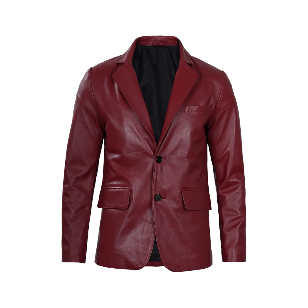 Make a bold statement with this luxurious burgundy leather blazer, where classic tailoring meets contemporary sophistication. The deep wine hue and premium lambskin construction create a head-turning piece that transitions effortlessly from boardroom meetings to evening engagements.