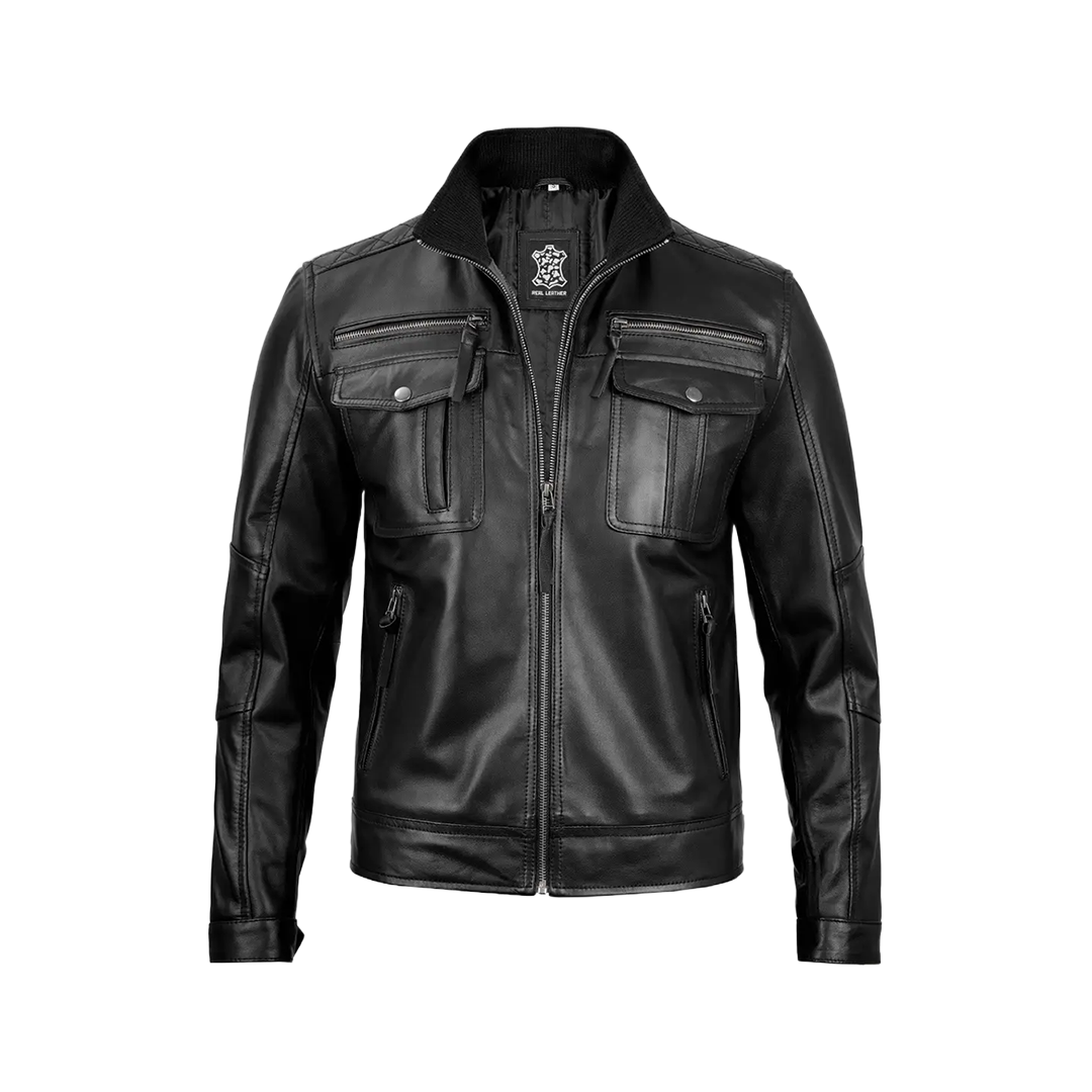 Crafted from 100% genuine lambskin leather, this sleek black cafe racer jacket delivers authentic motorcycle heritage with everyday wearability. The minimalist design features premium details for a polished, versatile look.