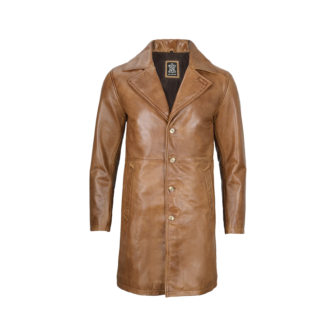 Invest in enduring style with this classic camel brown car coat, crafted from 100% premium lambskin leather. The rich, warm hue and minimalist design create a versatile outerwear piece that develops a distinctive patina, becoming more characterful with each wear.