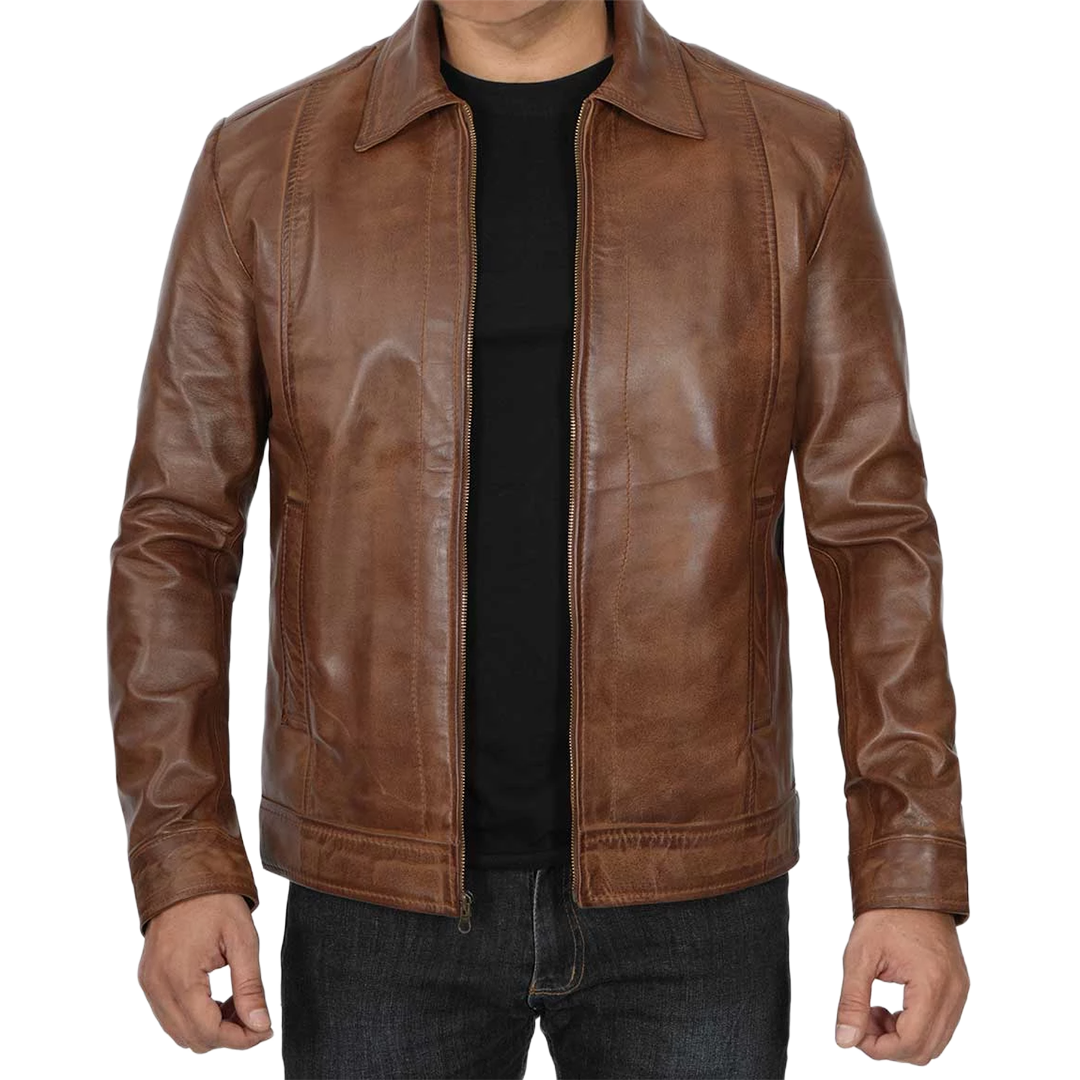 Crafted from 100% genuine lambskin leather, this chocolate brown Harrington jacket delivers timeless versatility with its clean lines and comfortable fit. The shirt-style collar and zip-front design create a polished look perfect for daily wear.