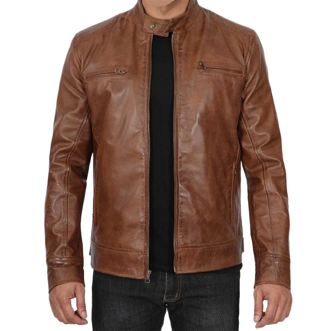 Crafted from 100% premium lambskin leather, this chocolate brown cafe racer jacket embodies refined luxury with its rich hue and buttery-soft texture. The sleek silhouette and meticulous detailing create a versatile piece that transitions effortlessly from casual to sophisticated occasions.