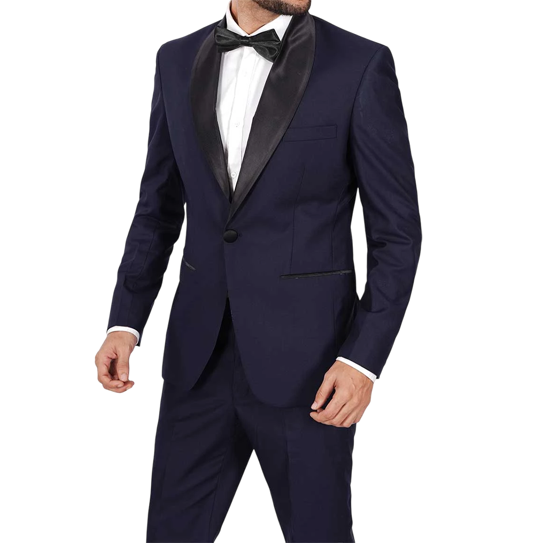 Redefine formal elegance with this versatile dark blue tuxedo, where the richness of midnight blue meets the timeless fluidity of a shawl collar. Crafted from luxury cotton, this ensemble transitions effortlessly from black-tie galas to summer weddings, offering unmatched sophistication for every important occasion.