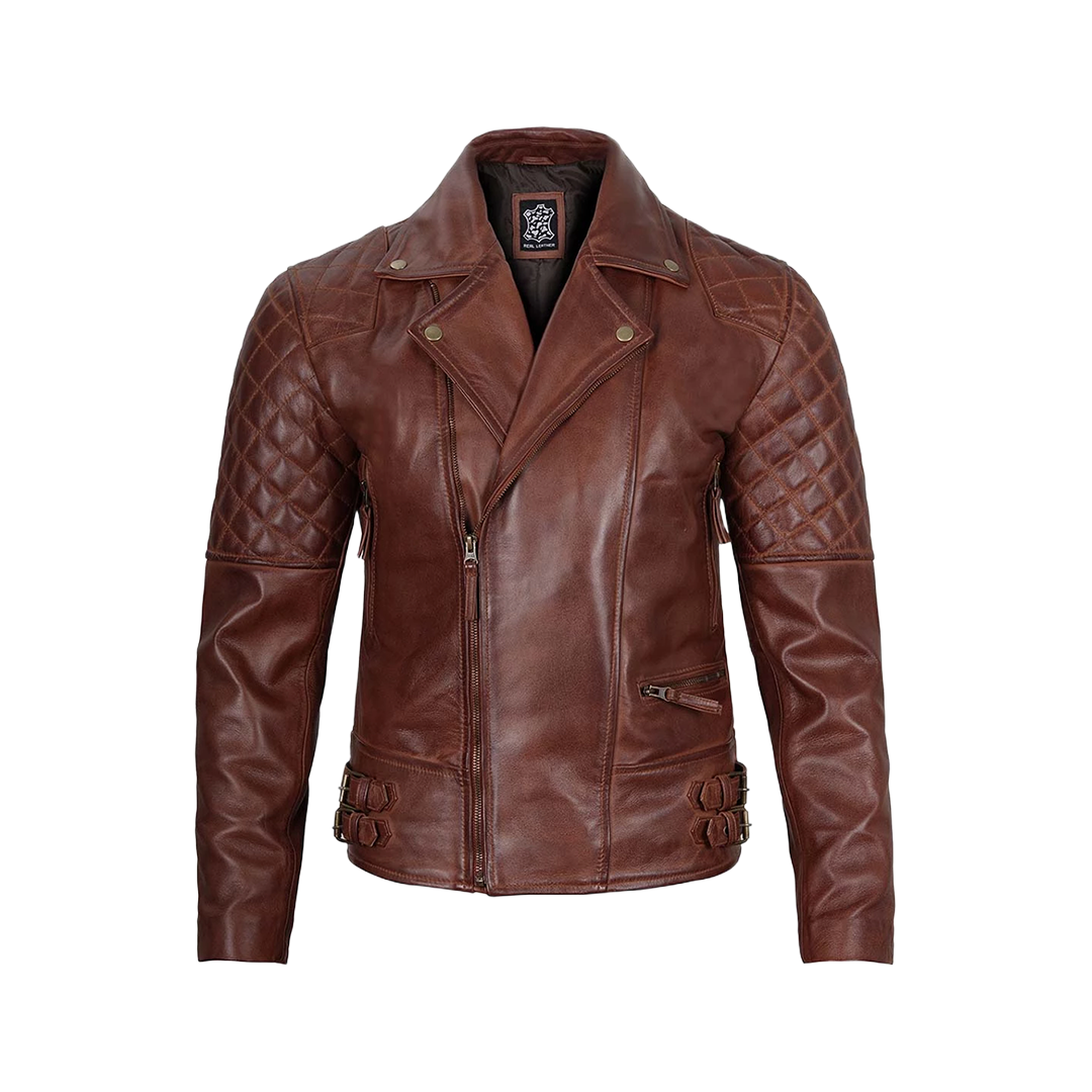 Command attention with this dark brown asymmetrical biker jacket, crafted from 100% genuine lambskin leather. The quilted shoulder and arm detailing pays homage to vintage motorcycle gear, while the asymmetrical zipper and distressed finish create a contemporary statement piece that transcends trends.
