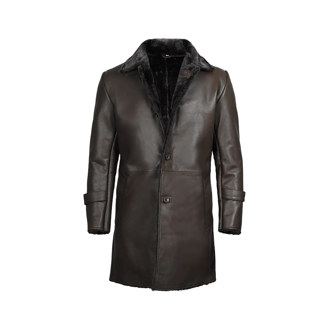 Experience unmatched warmth and sophistication in this premium shearling coat, crafted from 100% genuine lambskin leather. The rich dark brown exterior contrasts beautifully with the plush faux shearling lining, creating a winter essential that blends rugged elegance with exceptional comfort.