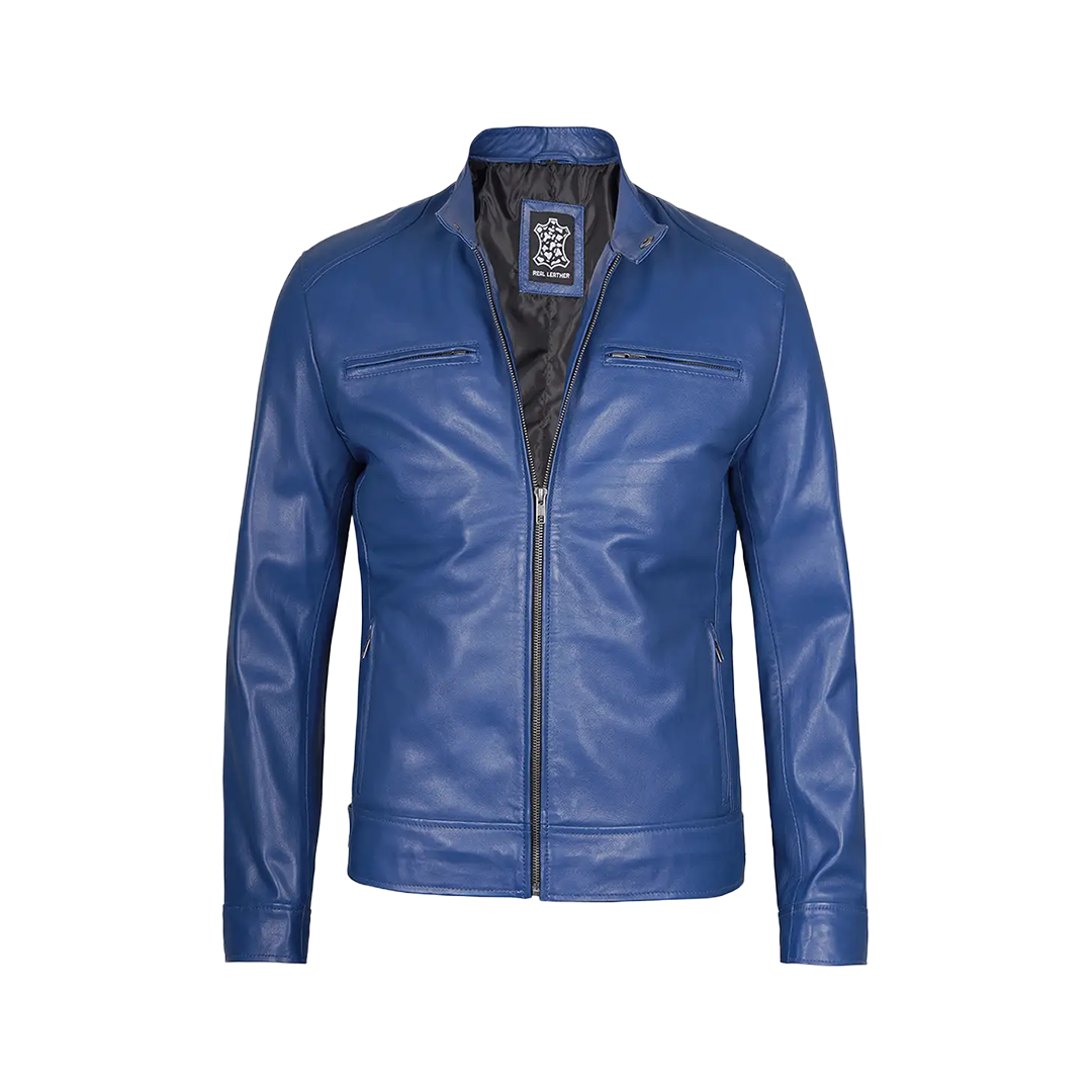 A bold statement piece designed for those who stand out. Crafted with precision, this jacket combines striking blue leather with functional biker styling, making it more than just outerwear—it’s a conversation starter.