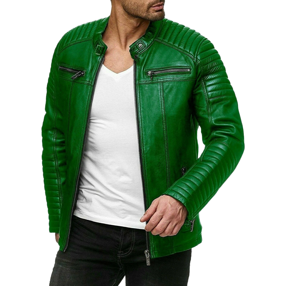 Make a sharp style statement with the Men’s Green Café Racer Rider Jacket, a perfect fusion of vintage moto flair and everyday utility. Designed for fashion-forward riders and urban explorers, this mid-length jacket features a rugged design and high-quality finish in an eye-catching green tone.