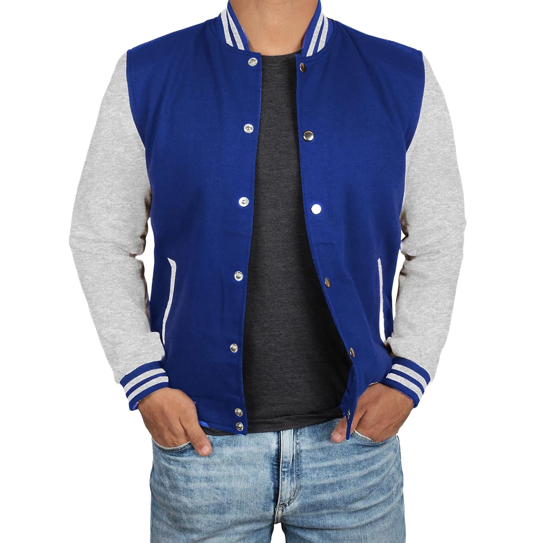 Channel collegiate cool with this classic letterman jacket, blending vibrant royal blue with sleek grey for a timeless athletic look. Perfect for game days, casual outings, or adding retro flair to your streetwear rotation.