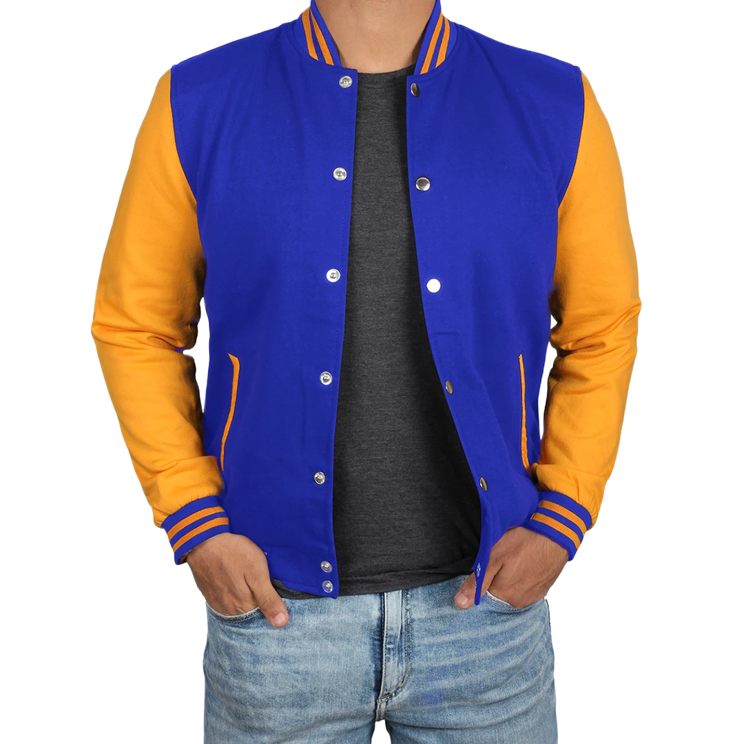 Channel collegiate spirit with this vibrant royal blue and yellow varsity jacket, featuring timeless baseball styling with modern comfort. Perfect for game days, casual weekends, or adding retro athletic flair to your everyday looks.