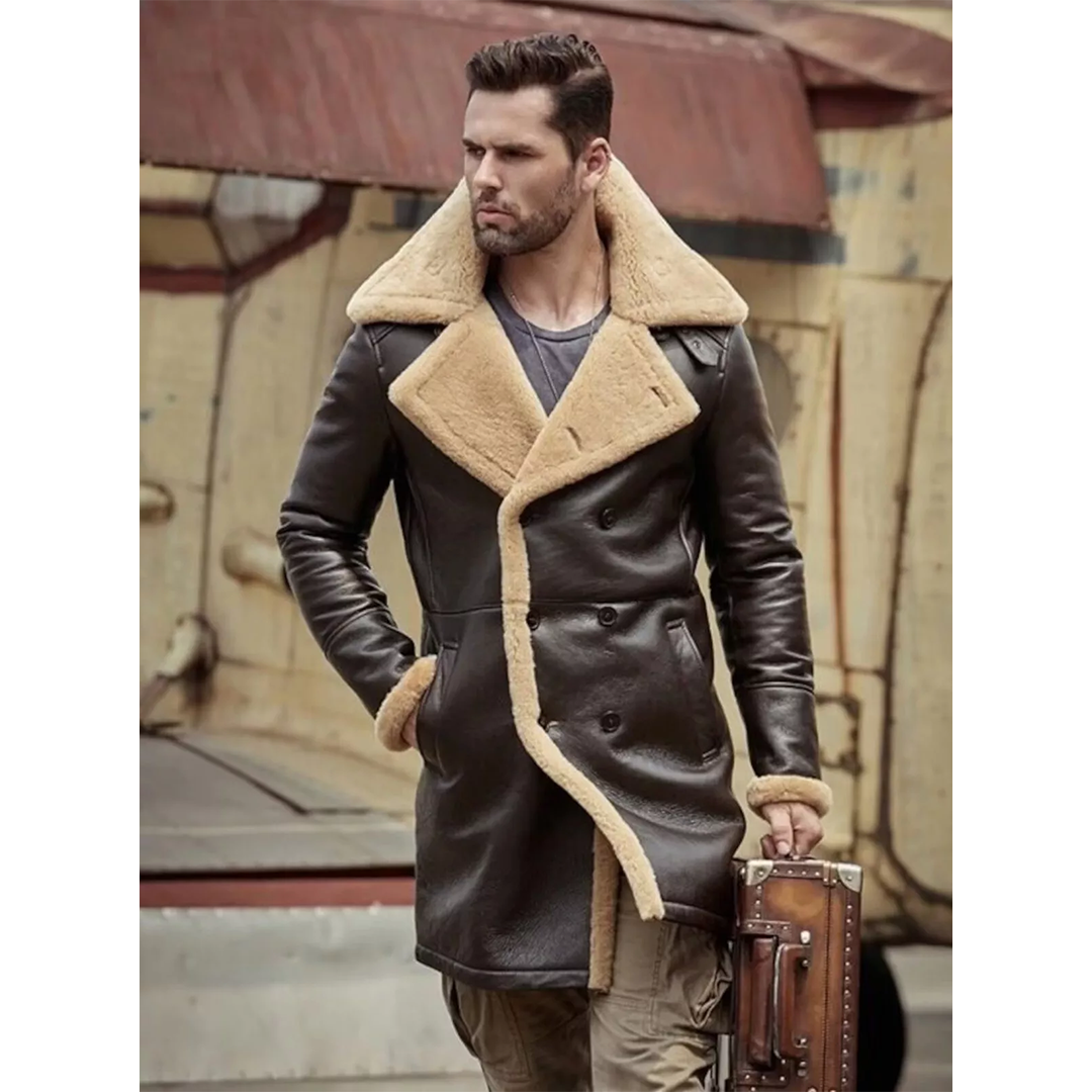 Command the winter chill in true vintage military style with our Men’s RAF Brown Sheepskin Shearling Leather Trench Coat. Inspired by classic Royal Air Force outerwear, this coat is the ultimate fusion of rugged durability and timeless design—crafted for those who value warmth, function, and heritage fashion.