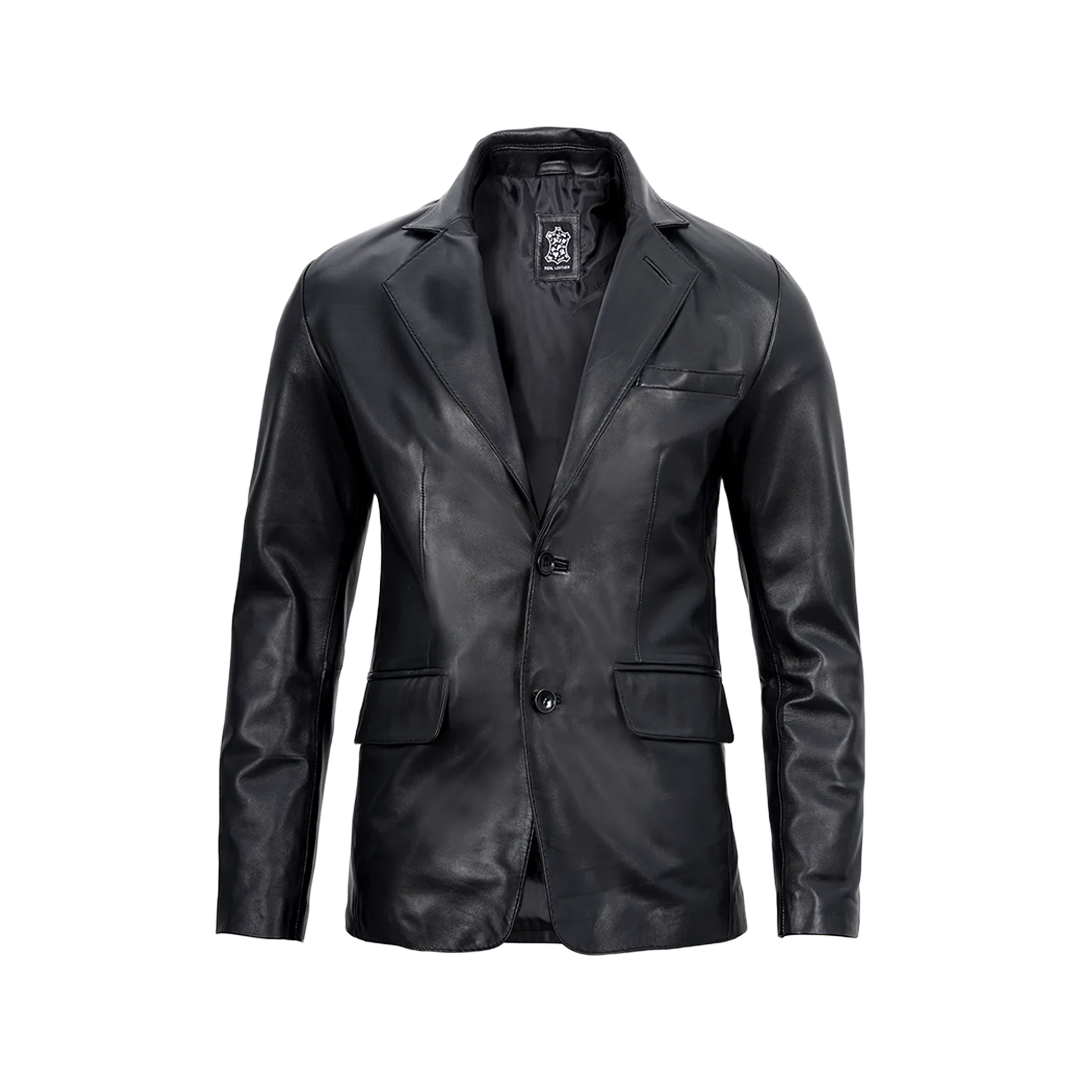 Master refined versatility with this premium black lambskin blazer, blending boardroom polish with contemporary edge. The ultra-soft leather and tailored notch lapel create a sophisticated statement piece that transitions effortlessly from professional to polished casual looks.