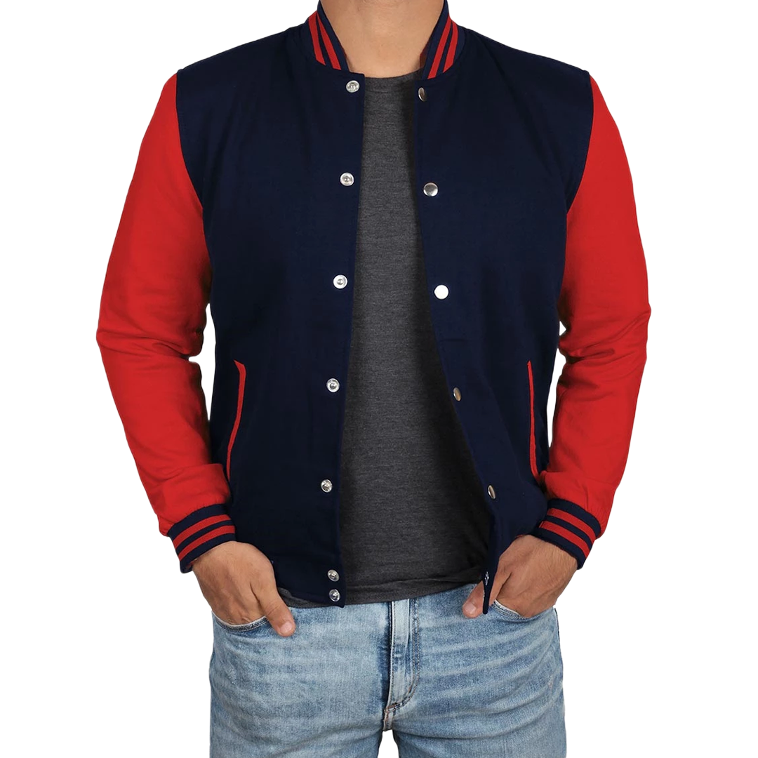 Hit a style home run with this classic red and navy varsity jacket, blending timeless collegiate vibes with street-ready comfort. The bold color-block design and premium fleece construction make it the ultimate throwback piece for game days and casual wear.