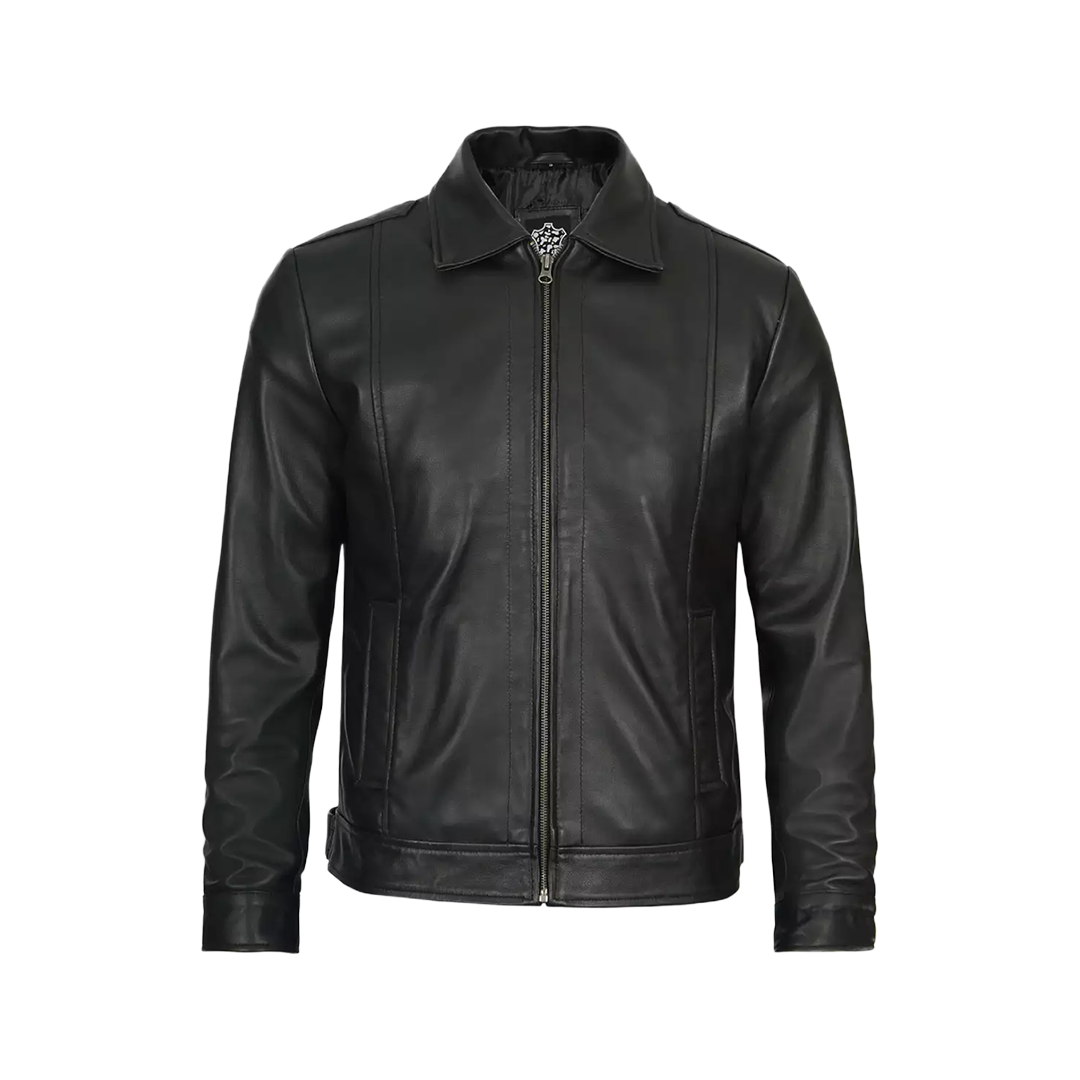 Elevate your casual wardrobe with this sleek black leather jacket designed for taller men (6'0" - 6'4"). Expertly crafted from 100% genuine lambskin leather, this Harrington-style jacket combines timeless sophistication with perfect proportions.