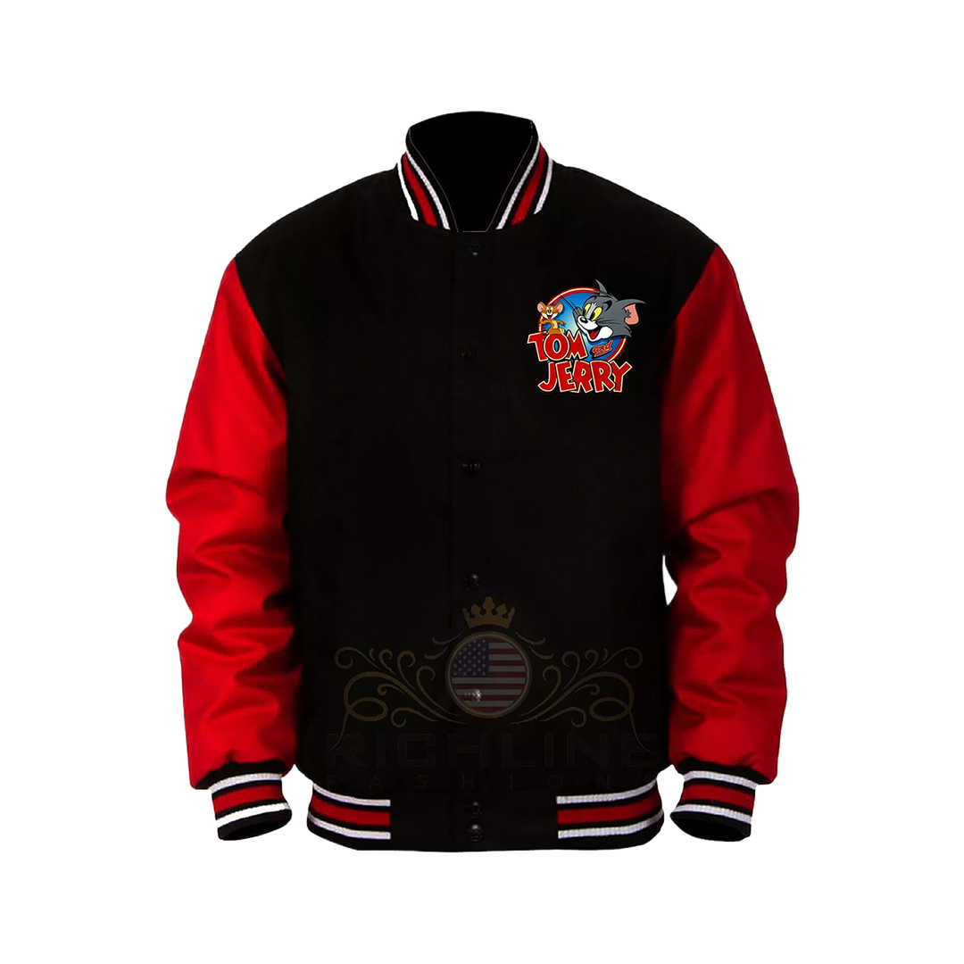 Add a nostalgic twist to your outerwear with the Men's Tom and Jerry Letterman Varsity Jacket, a bold fusion of childhood fun and classic varsity fashion. Designed for fans of timeless animation and street-style flair, this jacket is perfect for casual outings, collectors, or anyone wanting to make a playful yet stylish statement.
