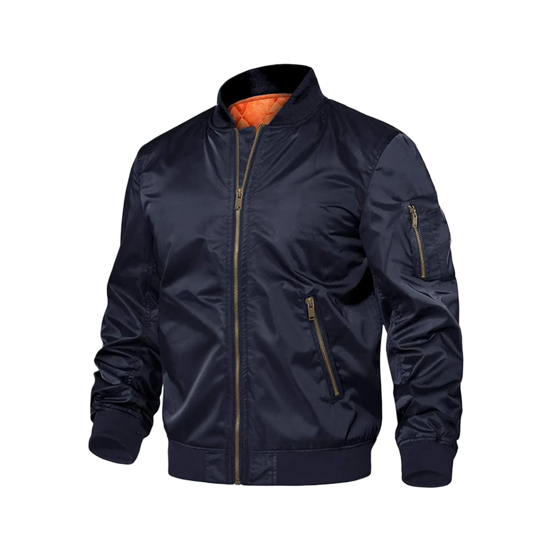 Conquer chilly weather in style with this sophisticated navy blue bomber, blending quilted insulation with windproof protection. The deep nautical hue and classic silhouette create a versatile piece that pairs effortlessly with your wardrobe essentials.